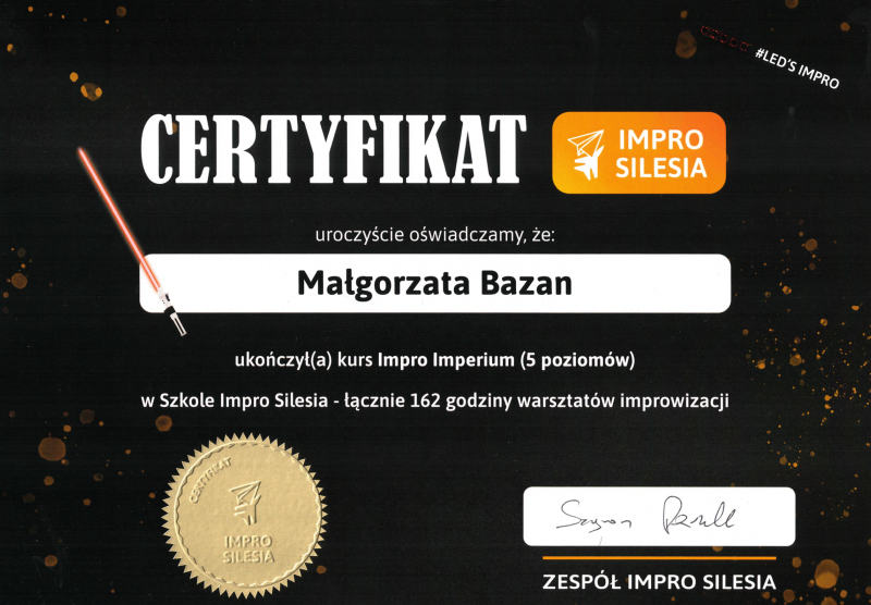 - Używam narzędzi takich jak Maxwell Leadership, Profile osobowości DISC PERSOLOG®, zarządzanie czasem PERSOLOG®, improwizacja sceniczna, gry statusowe, teambuilding, Język NVC (Porozumienie bez Przemocy), couching i facylitacja