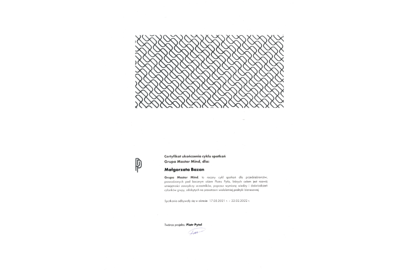 Nazywam się Małgorzata Bazan. Pomagam ludziom i firmom odnaleźć spokój, porządek i sens – w pracy, w relacjach, w życiu.