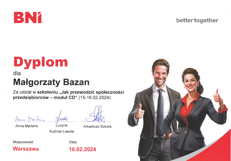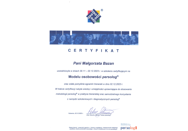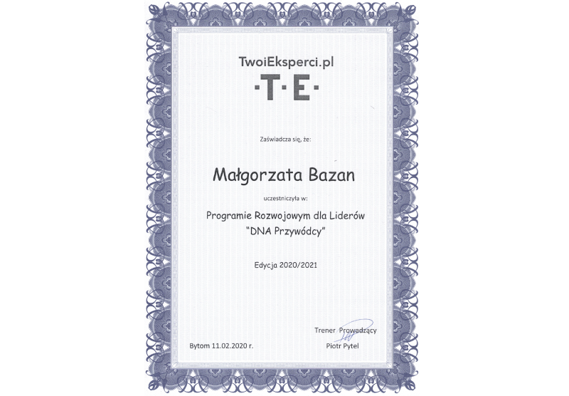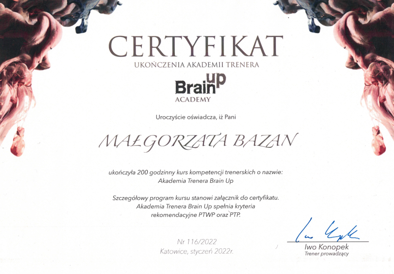 Nazywam się Małgorzata Bazan. Pomagam ludziom i firmom odnaleźć spokój, porządek i sens – w pracy, w relacjach, w życiu.